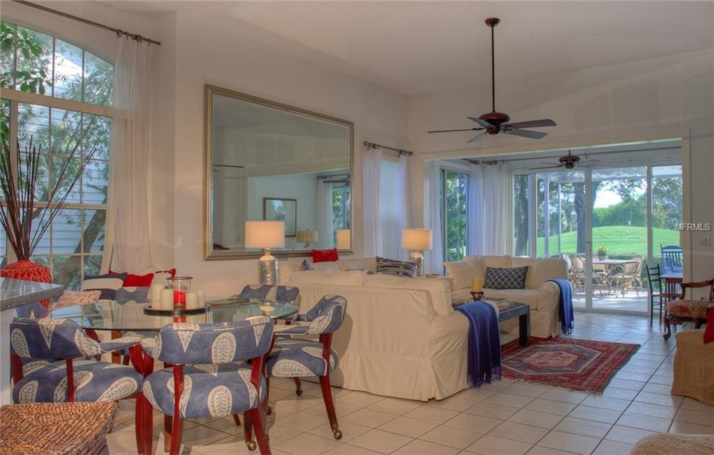 Beautiful decorating in this large villa with expansive views over the University Park golf course. All tile floors and large screened lanai overlooking the greens and sand trap. High end decorating in all the rooms, all tastefully coordinated. The villa has a king sized bed in the master bedroom, in the second bedroom there are two twin sized beds, then in the office/den there is a couch with a queen sized fold out bed. Off the kitchen there is a barbeque patio for ease of entertaining.